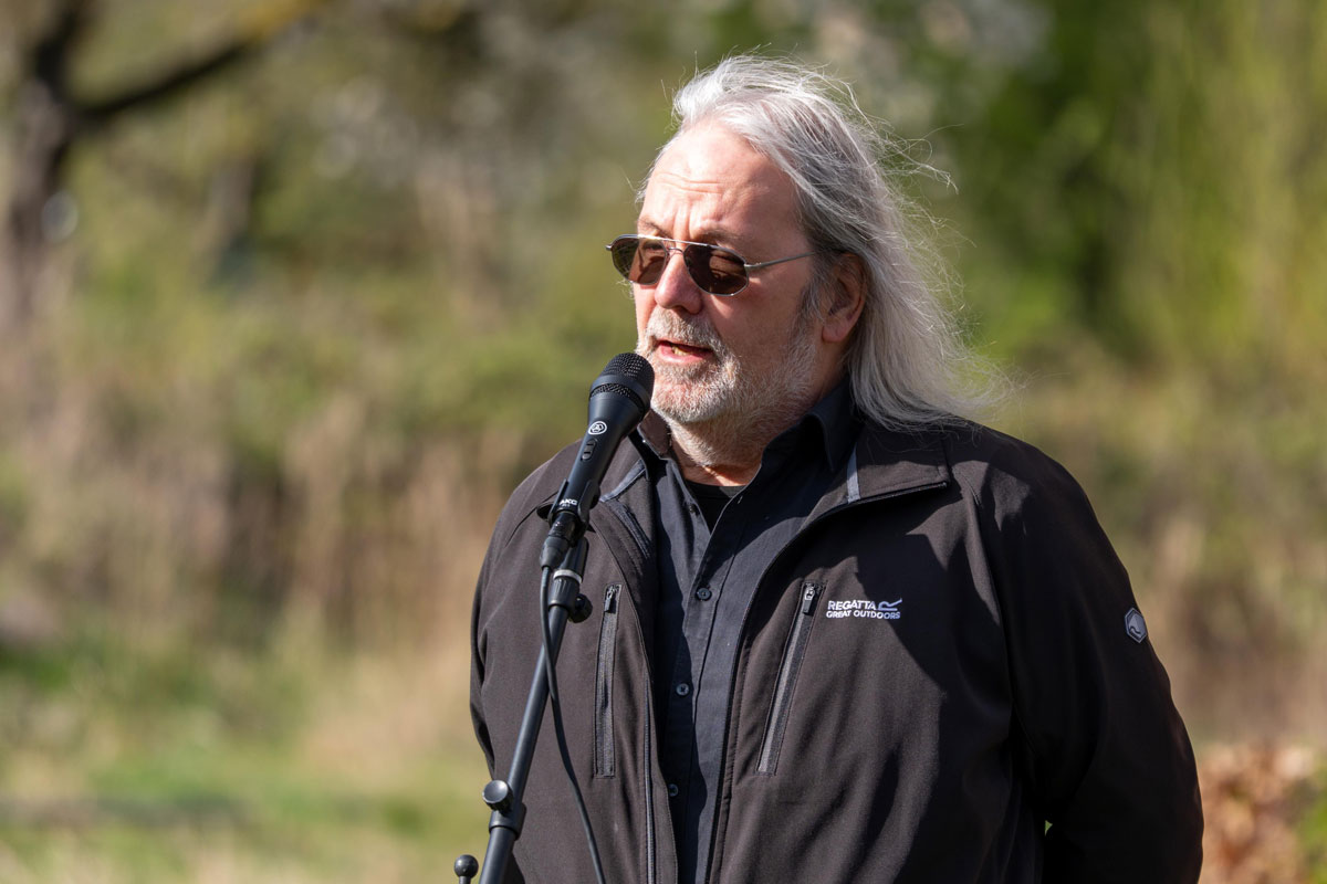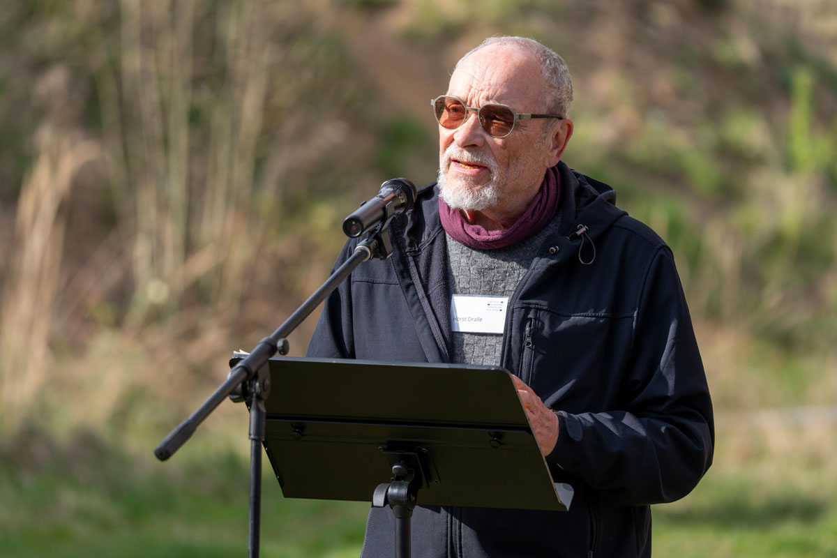 Nach der Begrü­ßung durch Horst Dralle beglück­wünschte Bezirks­bür­ger­meis­ter Rainer-Jörg Grube in seinem Gruß­wort den Arbeits­kreis »Ein Mahn­mal für das Frauen-KZ in Limmer« zum Erschei­nen des Buches »… nichts wird wie vorher sein.« mit Berich­ten ehema­li­ger Gefan­ge­ner des KZ Conti-Limmer.