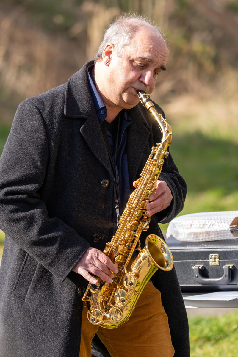 Eindrucks­volle musi­ka­li­sche Akzente im Rahmen der Lesung setzte der Musi­ker Cars­ten Beth­mann mit Saxo­fon und Percus­sion, dem der Arbeits­kreis an dieser Stelle noch einmal ganz herz­lich dankt!